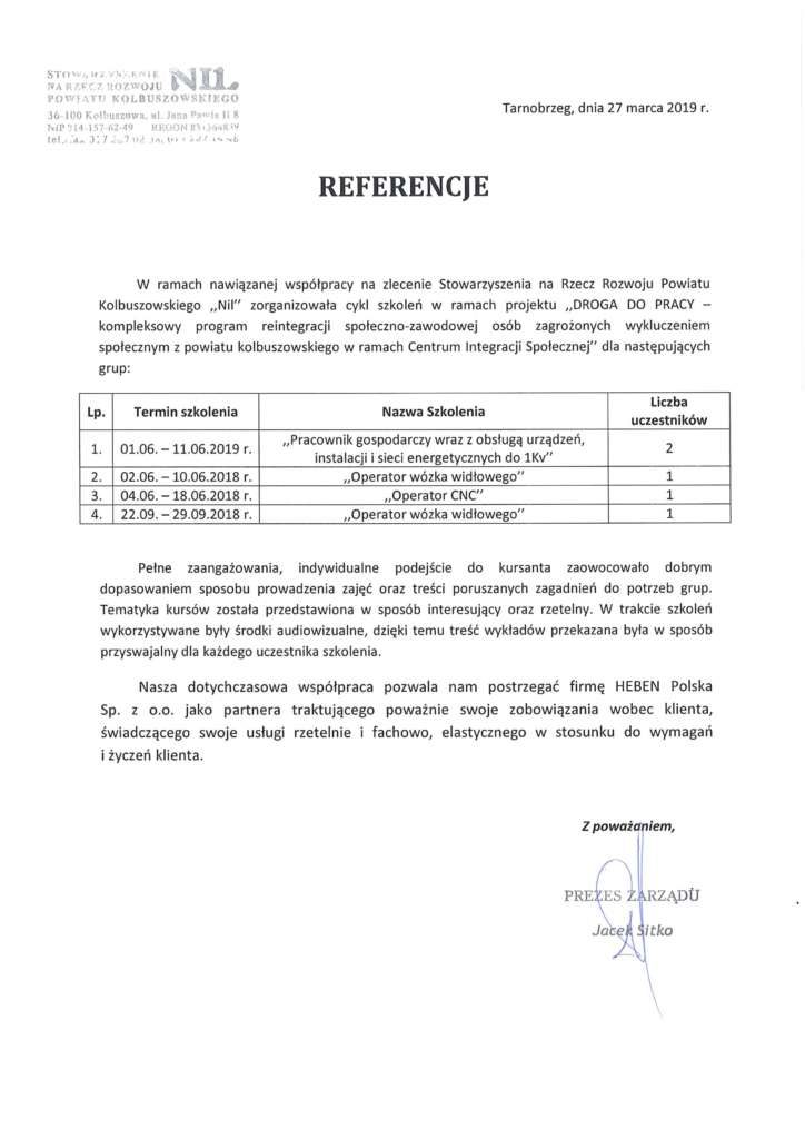 2. REFERENCJE Zespół Szkół Ponadgimnazjalnych nr 2 w Tarnobrzegu3. REFERENCJE Stowarzyszenie "NIL"4. REFERENCJE Zespól Szkół Ponadgimnazjalnych nr 2 w Tarnobrzegu5. REFERENCJE PUP w Mielcu6. REFERENCJE PUP Tarnobrzeg7. REFERENCJE TAAR