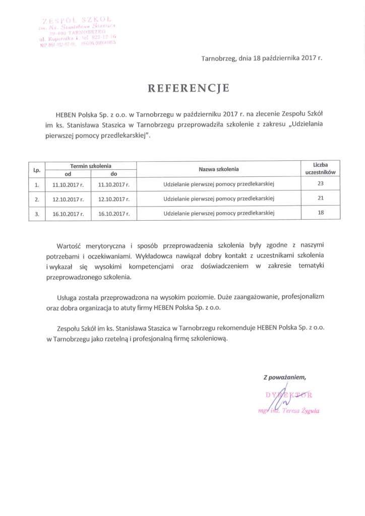 1. REFERENCJE ZSP1 w Tarnobrzegu2. REFERENCJE Zespół Szkolno-Przedszkolny w Przyszowie-Zapuściu3. REFERENCJE Publiczna Szkoła Podstawowa w Kurzynie Średniej4. REFERENCJE Liceum Ogólnokształcące im. M. Kopernika w Tarnobrzegu5. REFERENCJE Zespół Szkół im. ks. S. Staszica w Tarnobrzegu6. REFERENCJE SCUW Tarnobrzeg