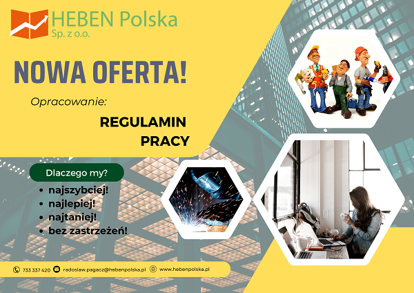 Firma HEBEN Polska Sp. z o.o. proponuje nową usługę: „OPRACOWANIE REGULAMINU PRACY”.